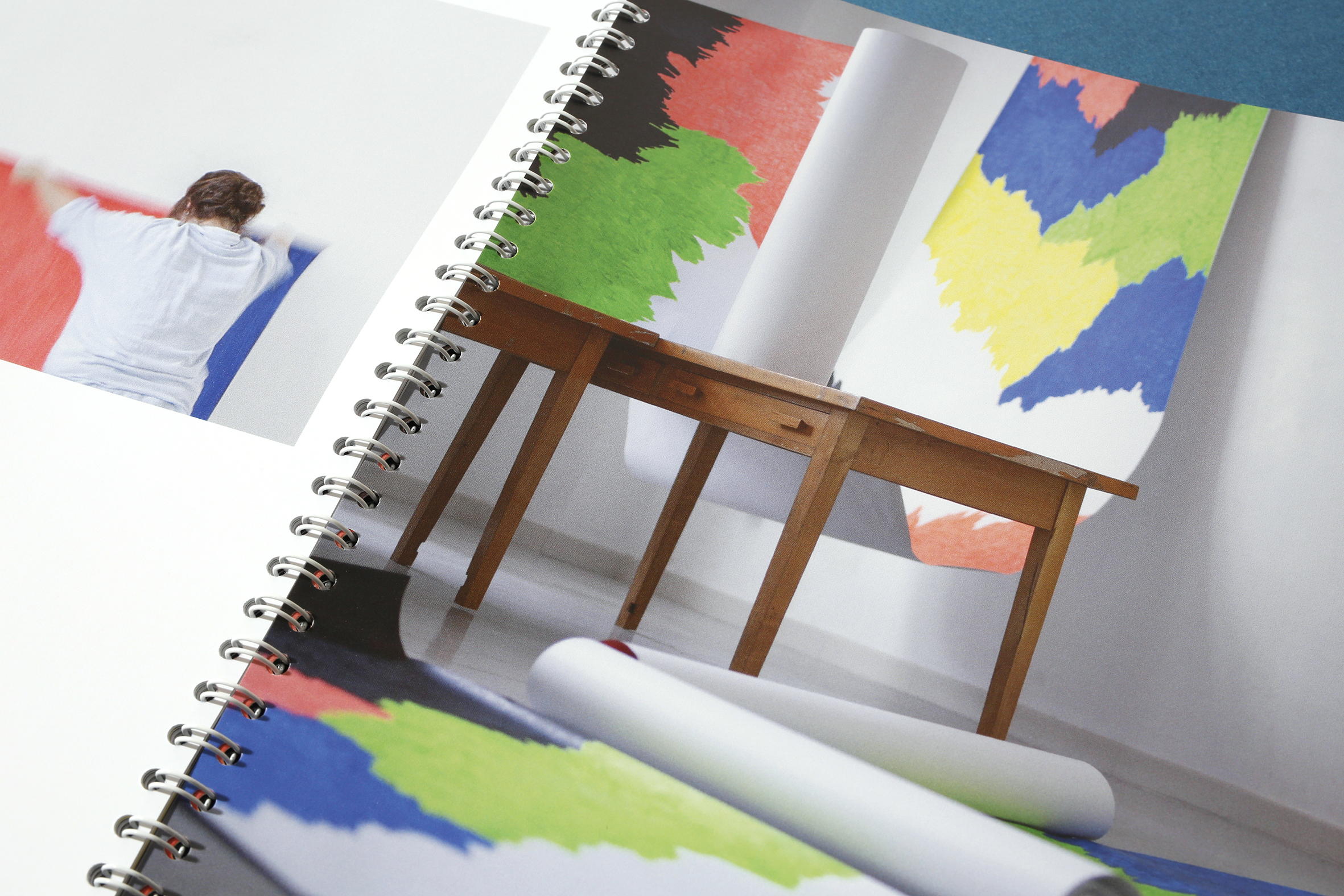 « Des pans de rouleaux de papier, coloriés aux feutres fluos, se déploient, se courbent, se plient